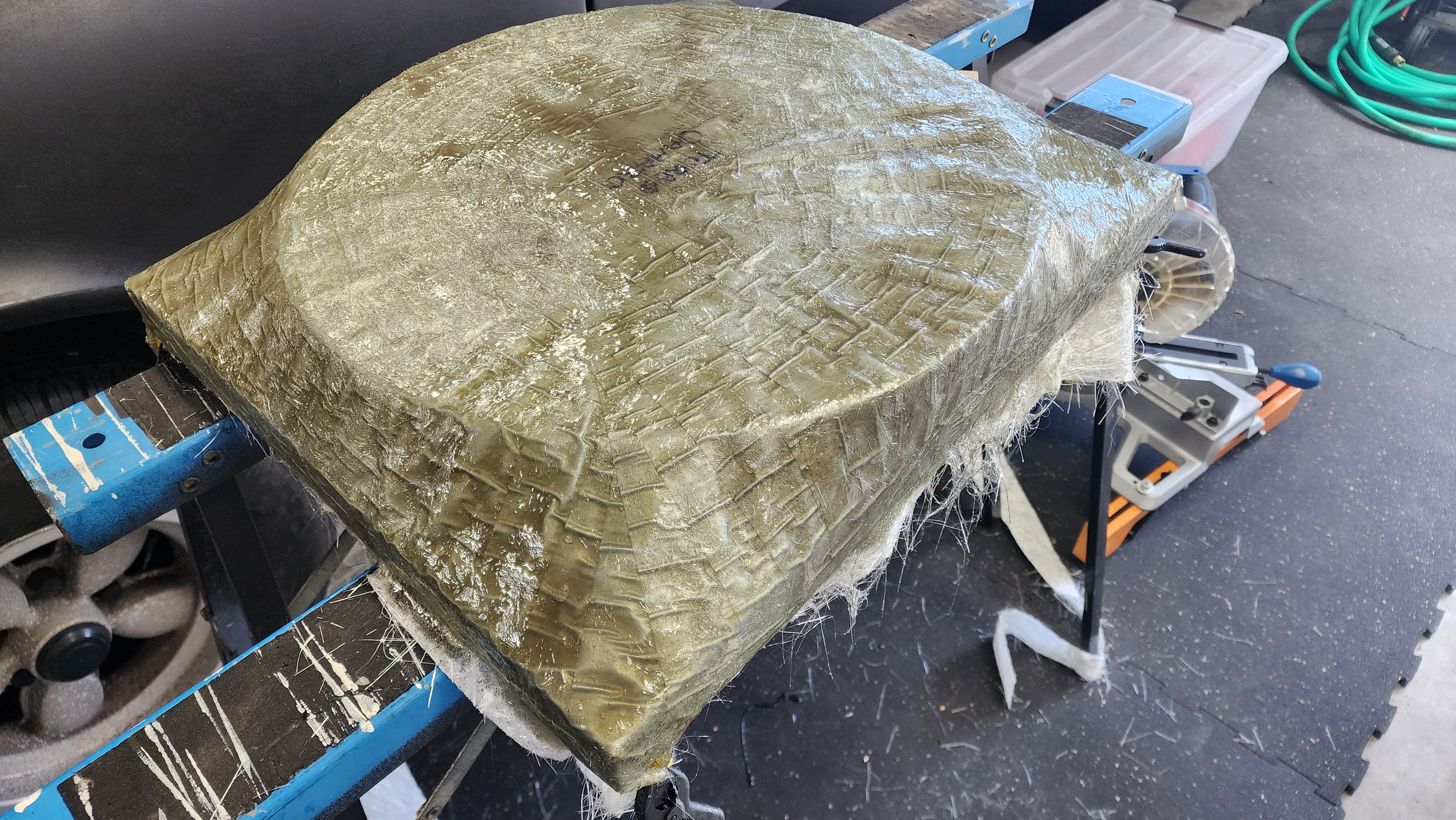 5. Lay the Fiberglass: Apply the fiberglass resin and cloth. I used almost two full Bondo Fiberglass Repair Kits to achieve a strong 4-5 layer thickness.