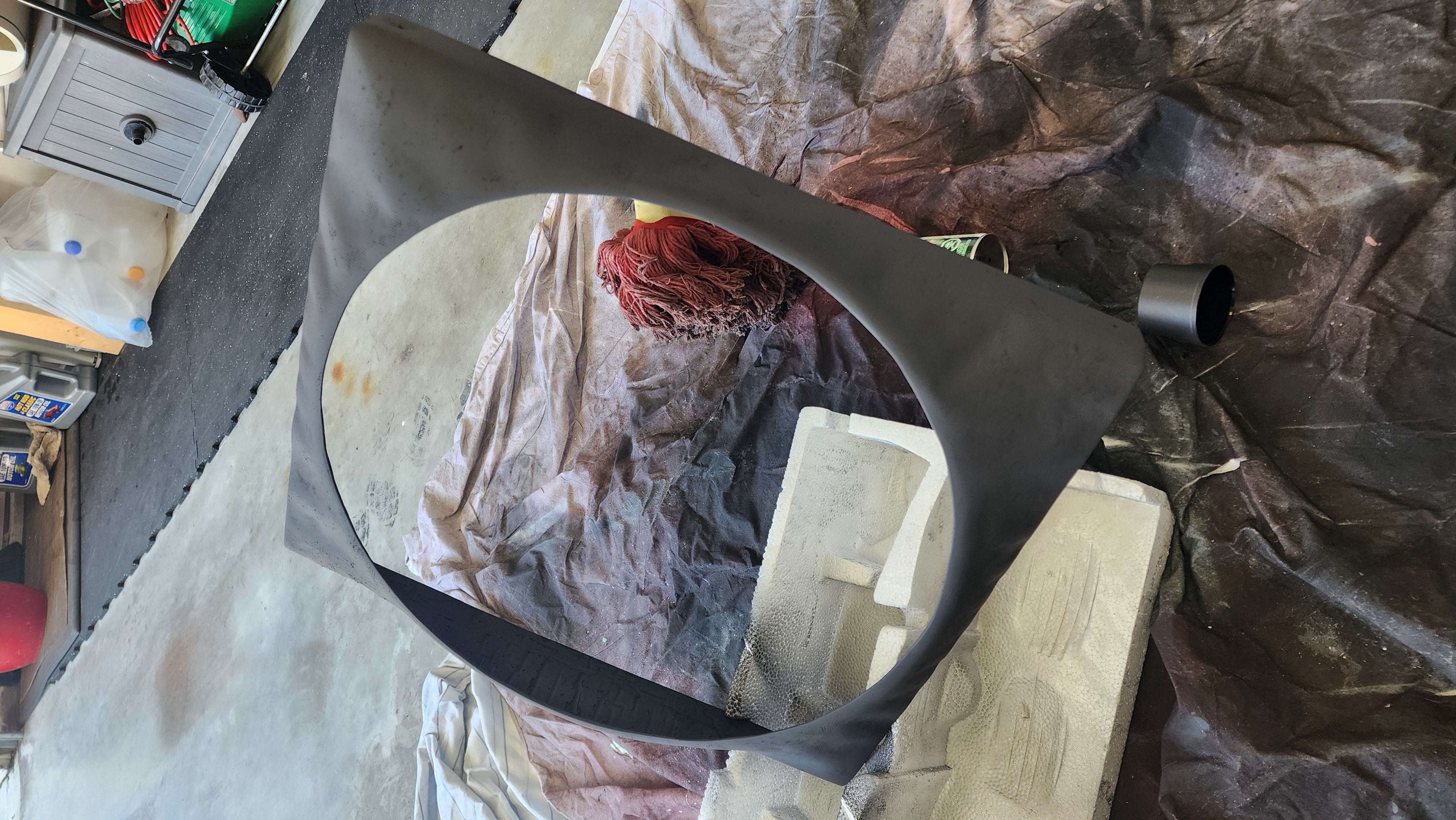 The completed shroud, trimmed and painted black. Note the edges appear wavy due to the thin fabric base; fortunately, this isn’t visible once installed.