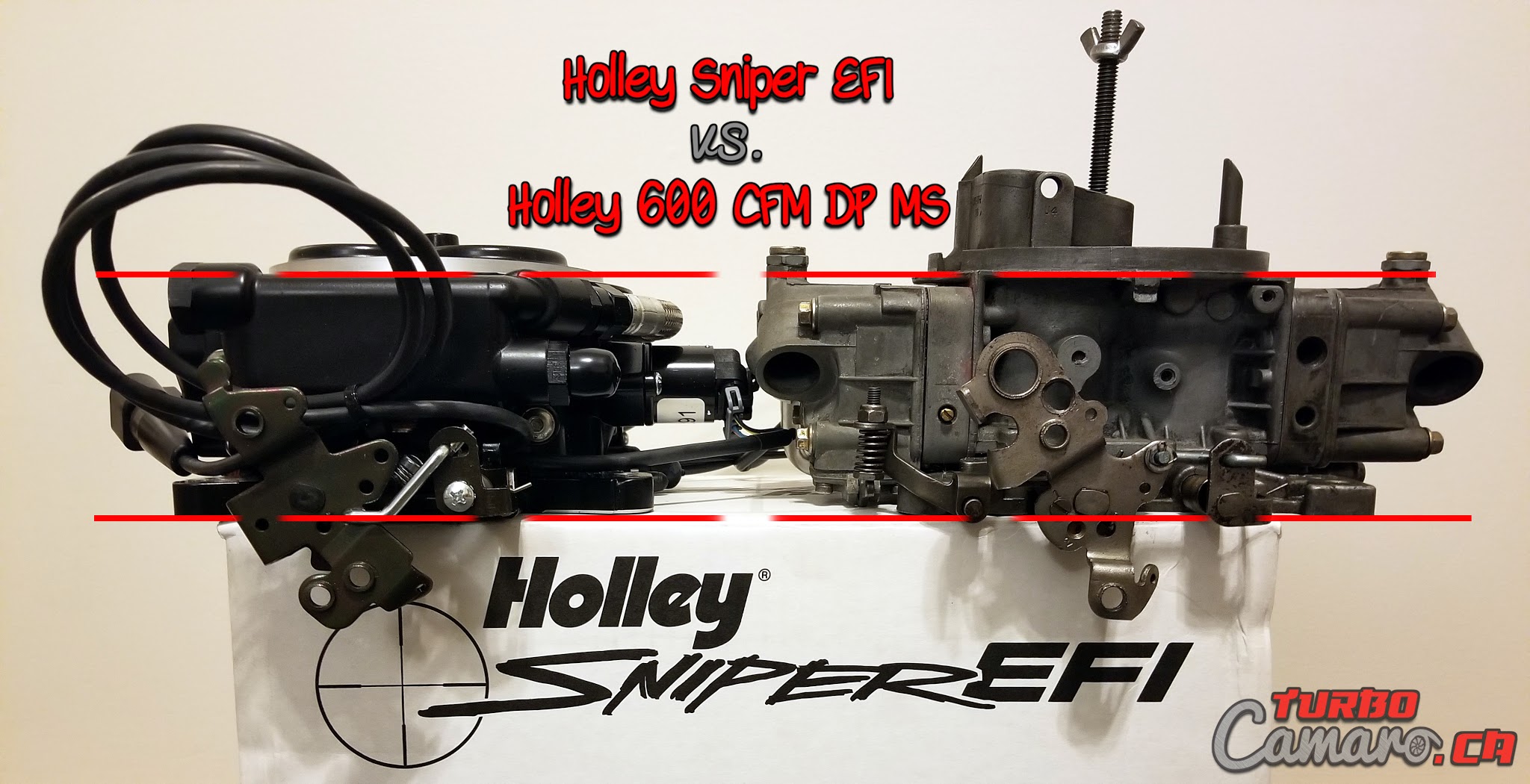 Of course a consideration for anyone is height vs. hood clearance. Various sources say the Holley Sniper is about the same height as a typical carburetor, and they’re right. Our comparison below to the real deal proved just that.