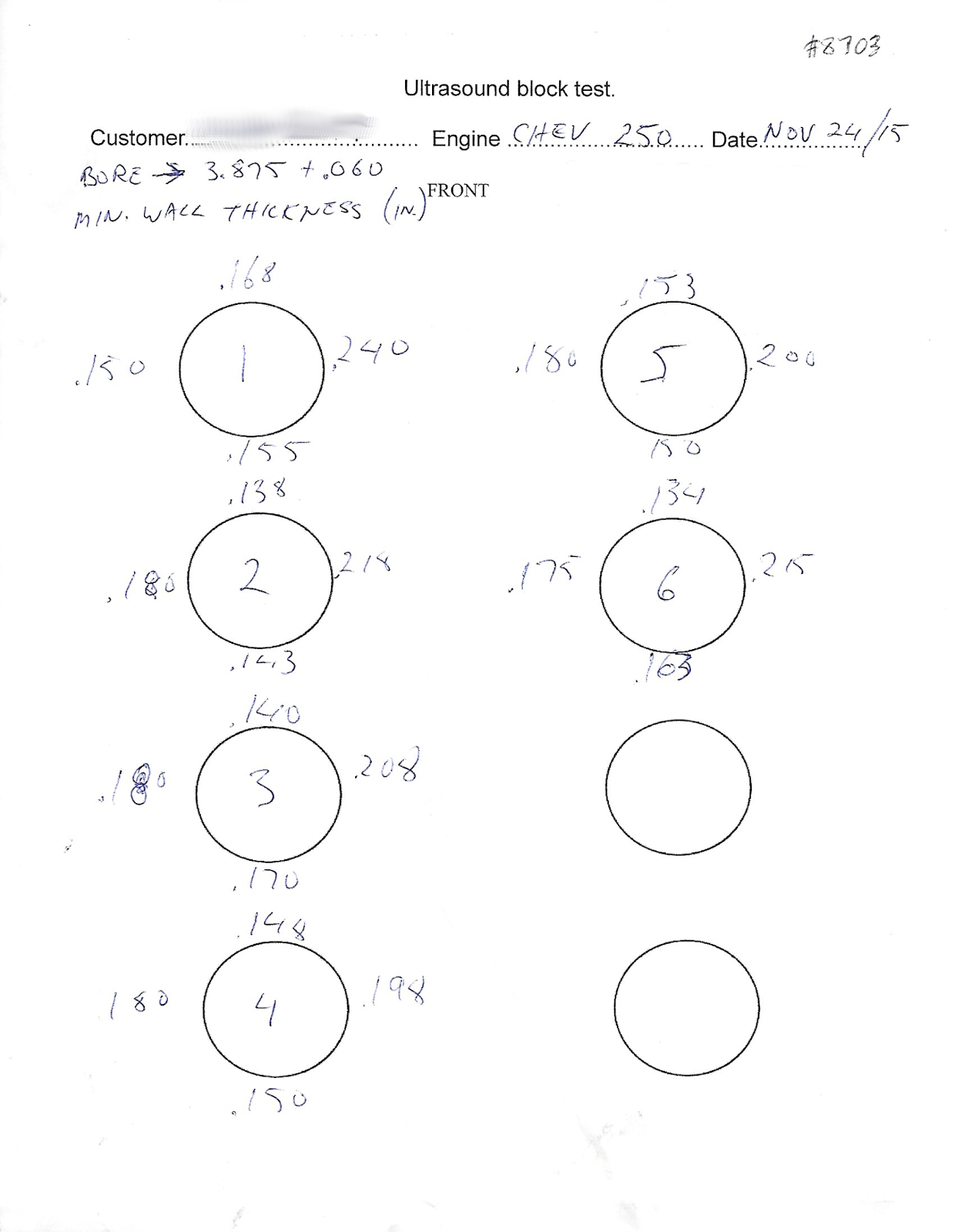 - Ultrasound Check: Cylinders checked for wall thickness; cylinder 6 was the thinnest at 0.134”, well within spec.