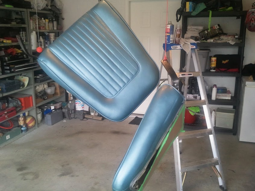 You have to take whatever item you want to spray out of the car. Unbolt the seats, remove the door panels and drop the headliner. The headliner on Turbo Camaro went through a similar process, in this article. Get them far away from your car as over spray is a nightmare.